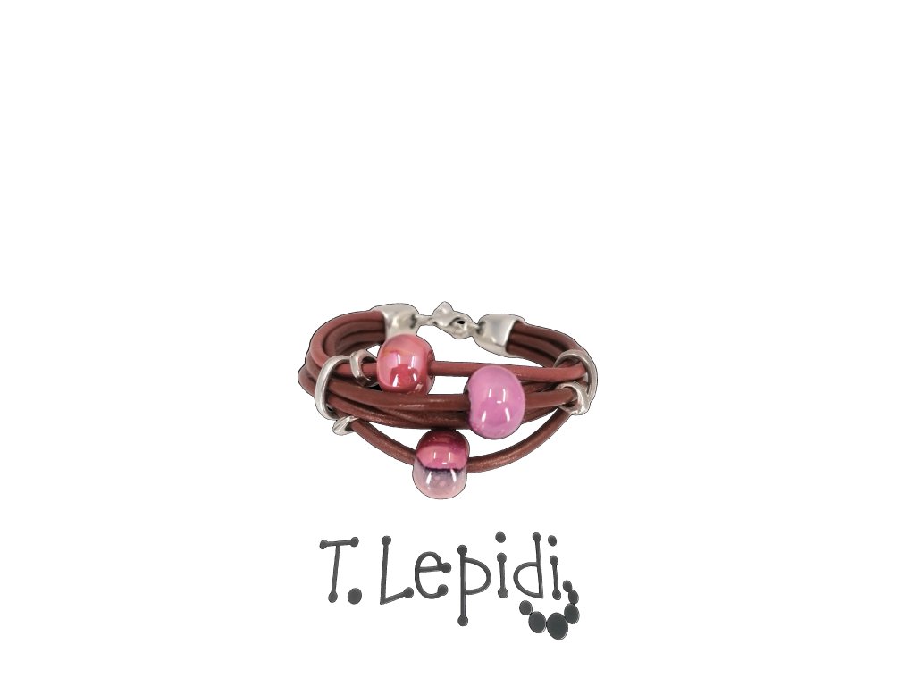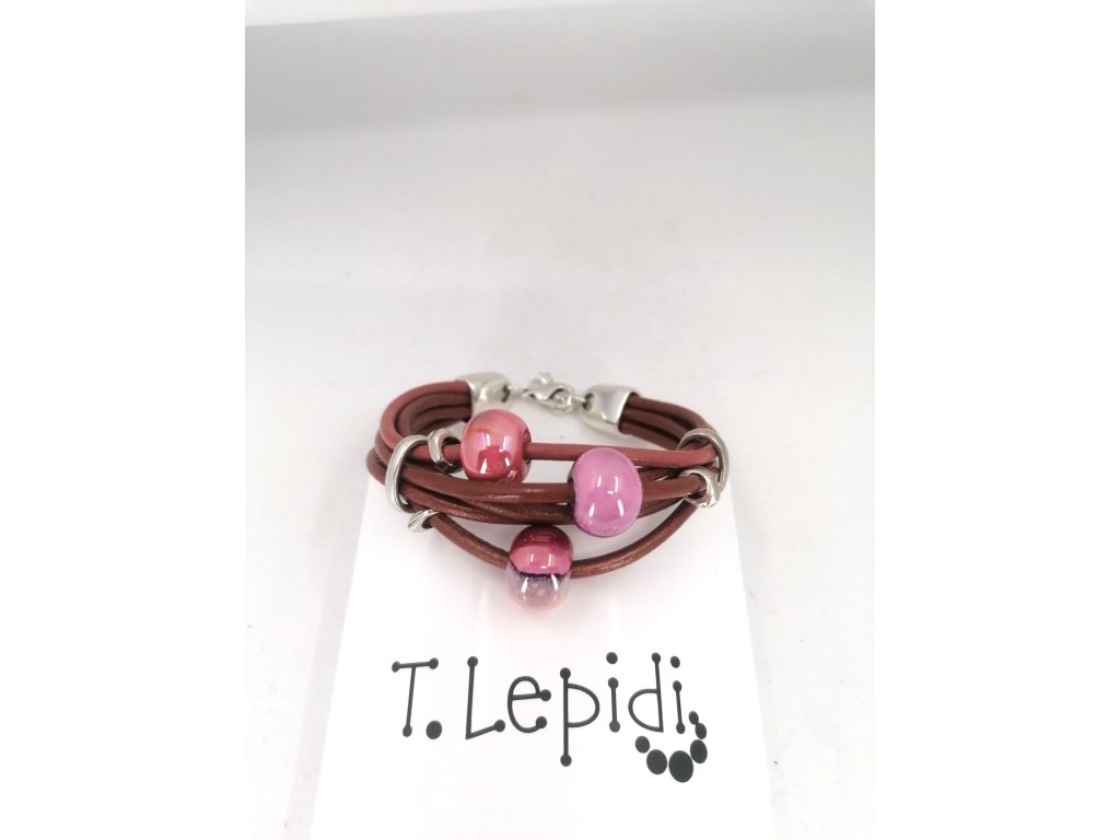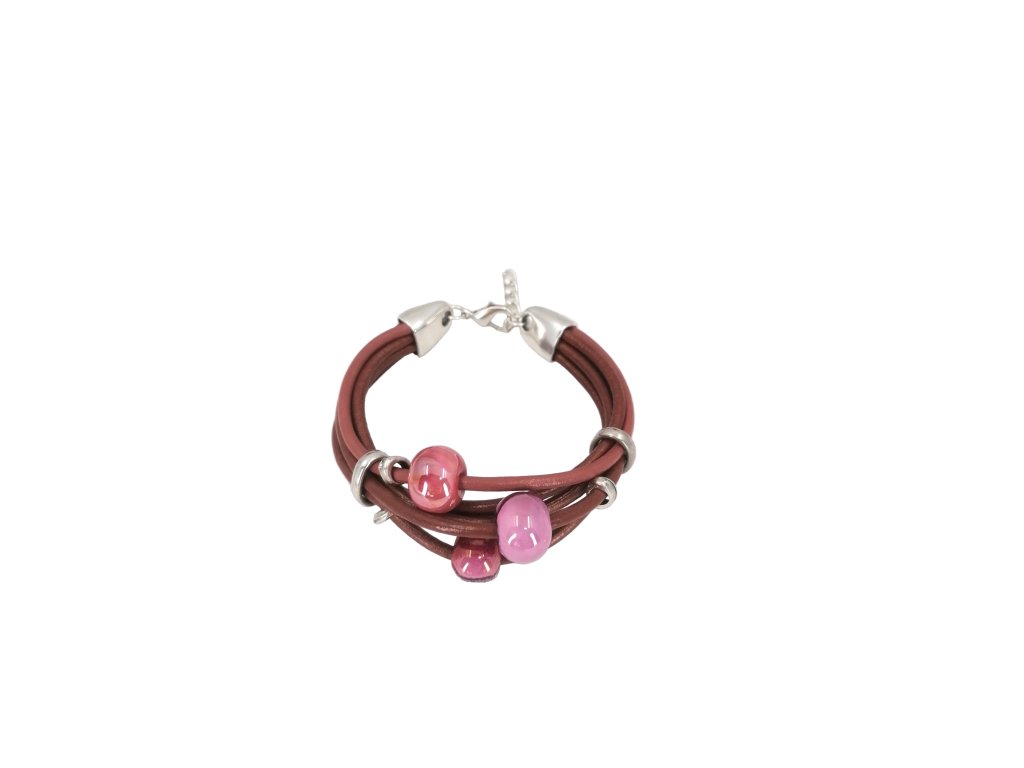 Náramek z červené kůže s růžovými korály.