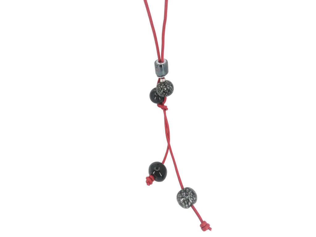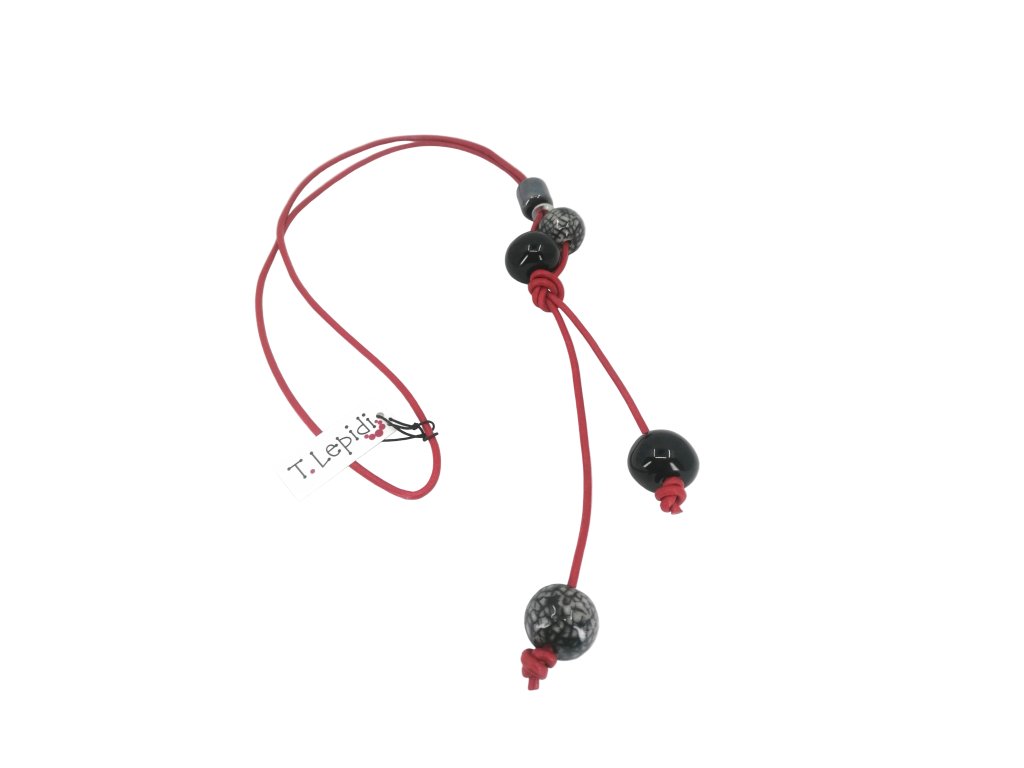 Šperky jsou vyrobeny z kůže, ručně malovaných keramických korálů a postříbřených komponentů bez obsahu niklu a kadmia.
