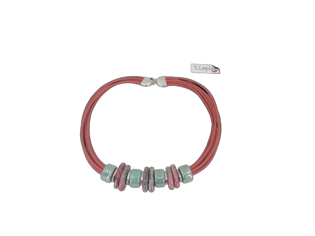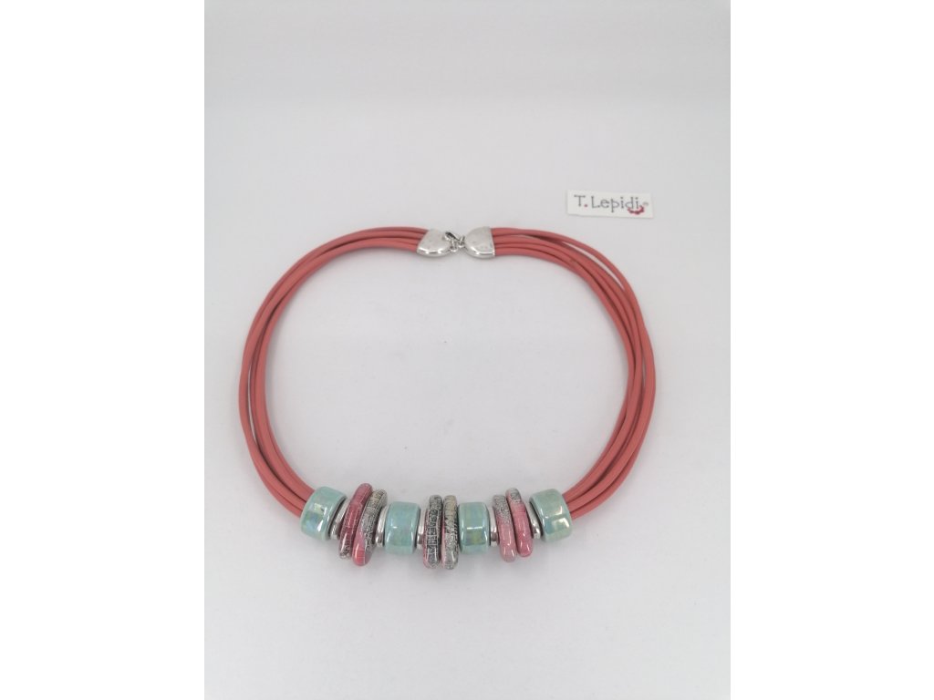 Šperky jsou vyrobeny z kůže, ručně malovaných keramických korálů a postříbřených komponentů bez obsahu niklu a kadmia.