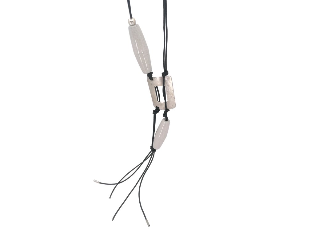 Šperky jsou vyrobeny z kůže, ručně malovaných keramických korálů a postříbřených komponentů bez obsahu niklu a kadmia.