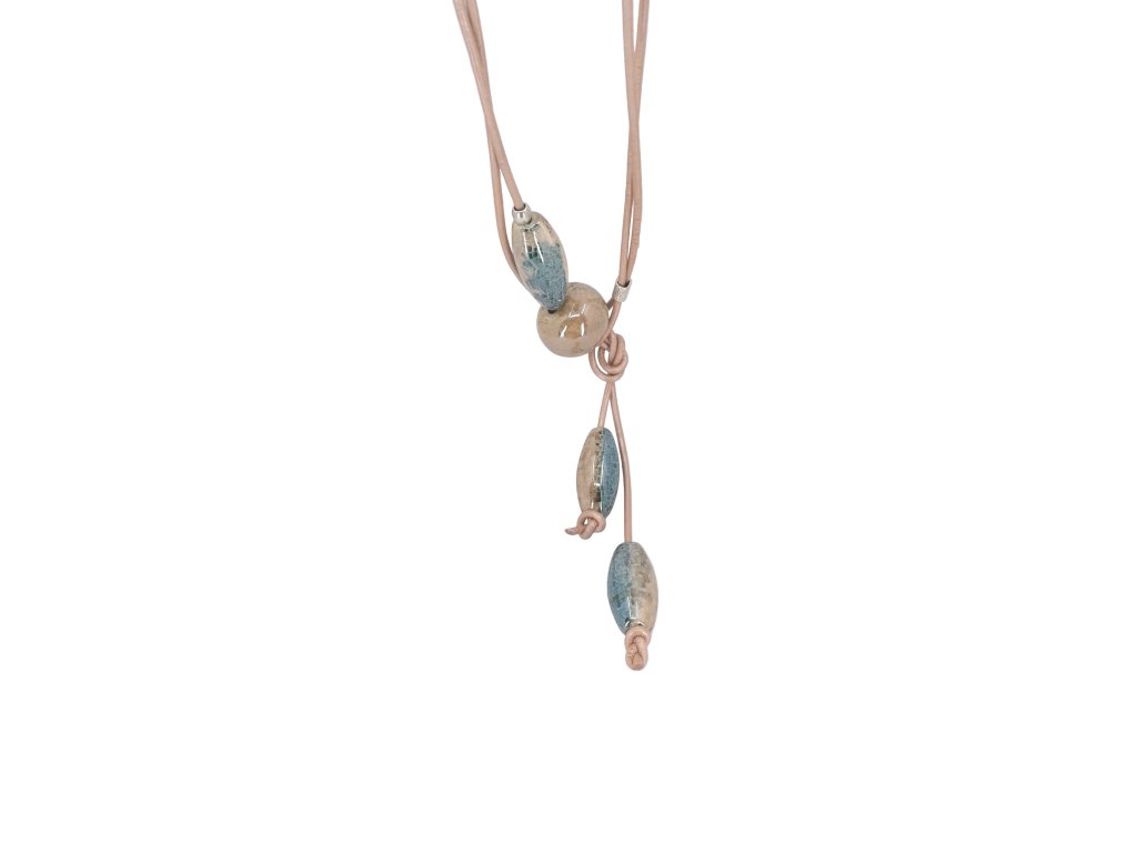 Šperky jsou vyrobeny z kůže, ručně malovaných keramických korálů a postříbřených komponentů bez obsahu niklu a kadmia.